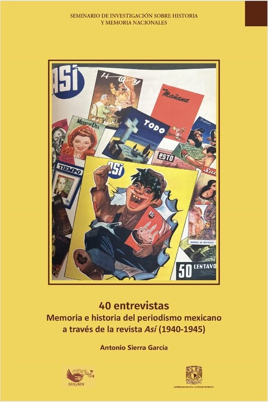El libro que acaba de publicar el Seminario de Investigación sobre Historia y Memoria Nacionales de la UNAM, titulado “40 entrevistas a reporteros…”, son 40 entrevistas a Memoria, Historia y Periodismo Nacional a través de la Revista Así. En este libro lo que hice fue reunir cuarenta testimonios de comunicadores de la época, donde hablaban sobre sus historias de vida, quiénes fueron: por ejemplo, quién fue Rodrigo De Llano, quién fue Regino Hernández Llergo… los grandes hombres de la prensa, de la historia de la prensa en México. Y eso como un primer momento.