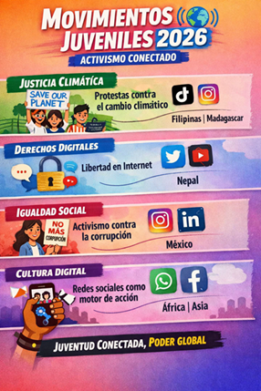 En los próximos años (2026-2030), las manifestaciones digitales de la juventud probablemente evolucionarán hacia formas híbridas, combinando organización en plataformas como TikTok, Instagram y Discord[1] con acciones presenciales, como se vio en las protestas globales de la Generación Z en 2024-2025 contra corrupción, desigualdad y fallos en servicios públicos.